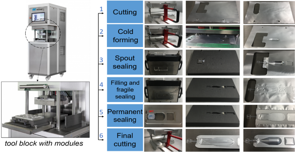 Fig. 4: Rohrer R560 servo and frangible formpack® blister (DosePan) production steps