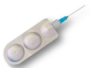 Fig. 5: Dual chamber blister® in different types: for retrobulbar injection (A) and for instillation (B)