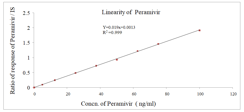 Results: The calibration curve was linear in the concentration percentage range from 10%-200% of Peramivir and its related substances. The calibration charts plotted were linear with a regression coefficient of R2>0.999. Accuracy, precision, recovery, matrix effect and stability results were found to be within the suitable limits. A Simple and efficient method was developed and utilized in pharmacokinetic studies to see the investigated analyte in body fluids.
