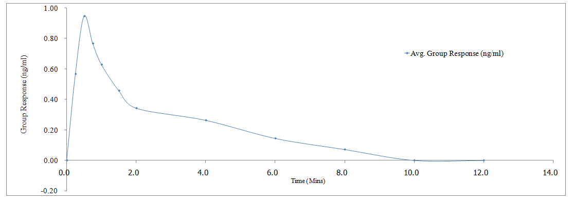 In this study six healthy white albino rats (body weight between 250-350grams) were obtained from Biological E Limited, Hyderabad, India. The protocol of the animal study was approved by the institute of the animal ethics committee (Reg. No: 1074/PO/Re/S/05/CPCSEA). Six rats are under fasting condition. Blood samples were collected from cardiac puncture procedure. The rat is anesthetized and blood is collected via the left ventricle using a 19-21 gauge needle. Blood will be withdrawn slowly to prevent the heart from collapsing. vein with volume of 0.2 ml to 0.4 ml at 0, 0.3, 0.5, 0.75, 1, 1.5, 2, 4, 6, 8, 10 and 12 h. Each sample was separated by centrifugation and stored at-20 °C.