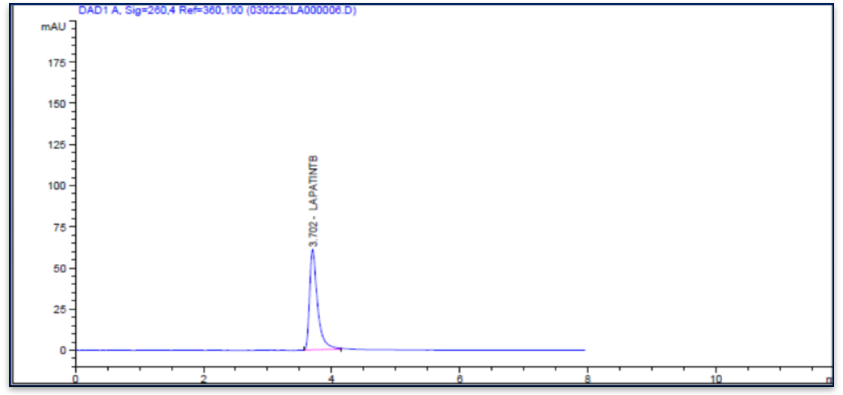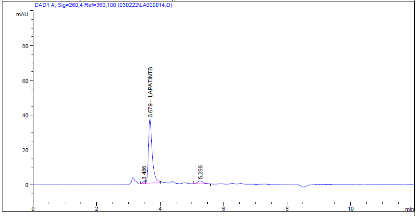 Saadat E, Dehghan Kelishady P, Ravar F, Kobarfard F, Dorkoosh FA. Development and validation of rapid stability-indicating RP-HPLC-DAD method for the quantification of lapatinib and mass spectrometry analysis of degraded products. J Chromatogr Sci. 2015;53(6):932-9. doi: 10.1093/chromsci/bmu150, PMID 25491314.