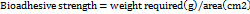 The bioadhesive strength of the formulated gels was measured by two arm balance with the use of wistar rat skin of 2 cm2 area. Bioadhesive strength is based on the composition, viscosity and mucoadhesive capacity of the polymers used to formulate gels. The skin adhesion study was performed on F2 and F5 formulations as they gave the best results among the six gel formulations. Bioadhesive strength was estimated using the following formula.