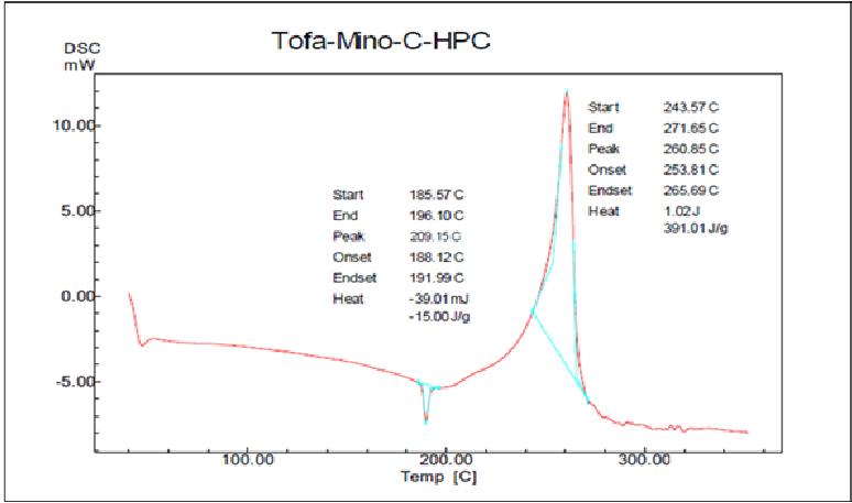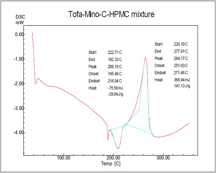 Fig. 4: Thermogram of physical mixture of Minoxidil+Tofacitinib citrate+Carbopol 934+HPC