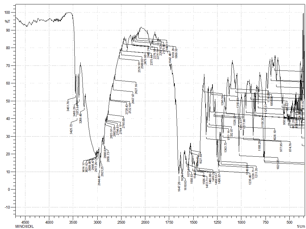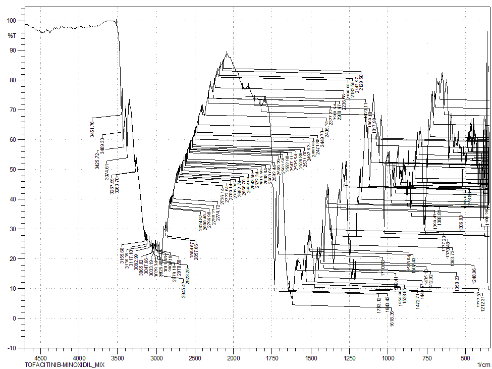 Fig. 7: FTIR spectrum of physical mixture of Minoxidil+Tofacitinib citrate
