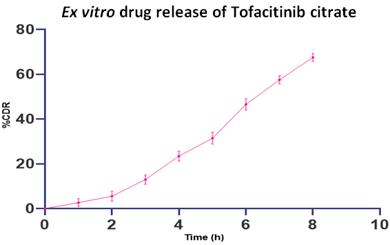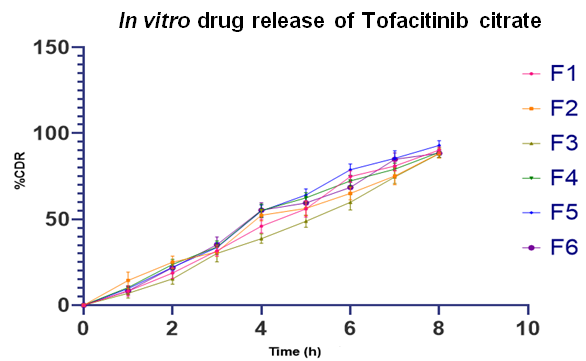 Fig. 15: In vitro drug release of Tofacitinib citrate from formulations F1-F6 (n=3) (mean±SD)