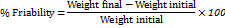 Friability of the prepared levofloxacin floating tablets was estimated by busing Roche-type Friabilator. It was determined by weighing 15 tablets after dusting, placing them in a Roche-type Friabilator and rotating the basket vertically at 25 rpm for 4 min (100 drops). After dusting, the total remaining weight of the tablets was recorded and the percentage friability was calculated according to the following formula