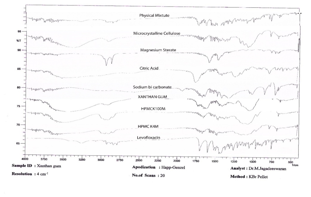 Xanthan gum was purchased from SD Fine Chem Limited, Mumbai. HPMC K100M and HPMC K4M and Levofloxacin hemihydrate were gifted by MICRO LABS LIMITED, Bengaluru. All other used solvents were HPLC grade.