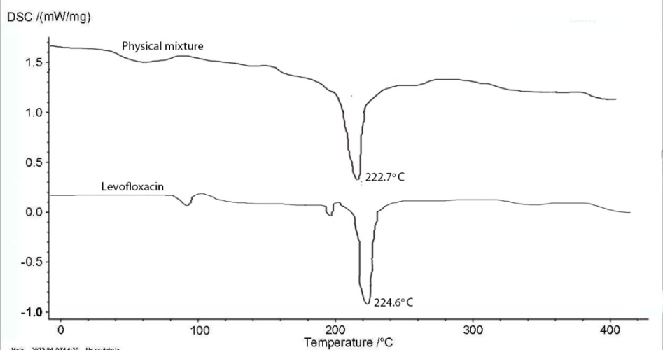 Fig. 2: DSC thermograms for levofloxacin and physical mixture