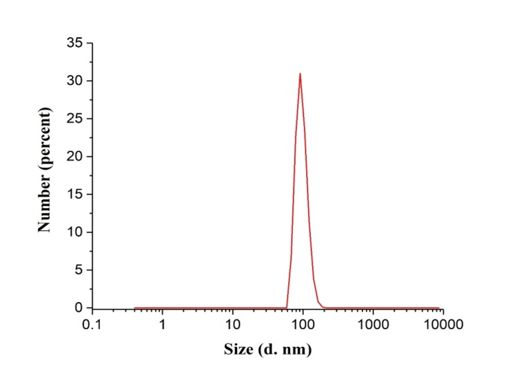 Nanoparticles prepared with a carbohydrate polymer-based system had a mean particle size of 104 nm, a PDI value of 0.21, and an average zeta potential of+8.75 mV. Table 9 and fig. 22 show the particle size distribution of the produced nanoparticles.