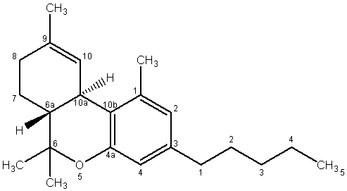 Binding to cannabinoid receptors has mainly been studied for Δ9-THC, which has the highest psychoactivity among plant cannabinoids [10]. The values of dissociation constants for the Δ9-THC⦁CB1 and Δ9-THC⦁CB2 complexes obtained by different authors are within the same order of magnitude. On the contrary, the geometric stereoisomers of Δ9-THC differ significantly in the strength of binding to the CB receptors. For example, the dissociation constant, determined using the [3H] CP55940 radioactive label for (-)-Δ9-(trans)-THC equals (22±13) nmol, while its value for (-)-Δ9-(cis)-THC is one order of magnitude higher: (228±45) nmol.