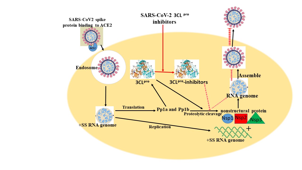 Fig. 1: The The 3CLpro (Mpro) of the SARS-CoV-2 virus is a key antiviral drug target