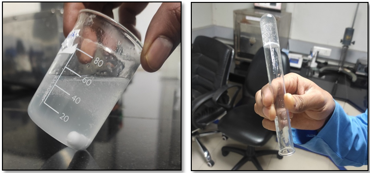 The gelling capacity of the prepared in situ gels was determined by using simulated tear fluid (STF). 2 ml of STF was taken in a test tube and warmed to 35 ᵒC. To it, 3-4 drops of the preparation were added and the gel formation was observed visually [9, 10].