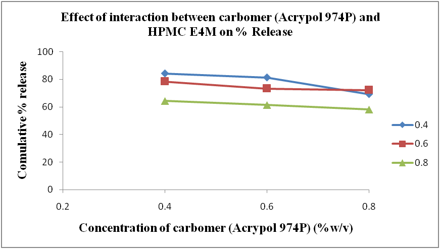 Fig. 11: Average effect of varied concentrations of carbomer (Acrypol 974P) and HPMC E4Mon release at 300 min