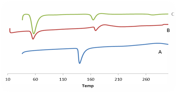 Fig. 13: DSC thermogram of Loratadine (A), S1 (B) and S9 (C)