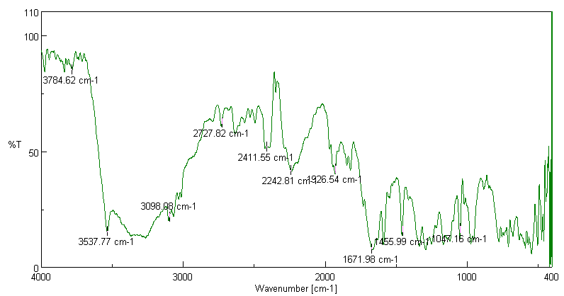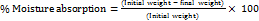 The moisture uptake was determined by cutting the film into 2 cm2 patches. These films were put for one day in a desiccator containing a saturated solution of potassium sulphate (relative humidity 75%) at room temperature. The increase in the weight of the film was observed, which was due to absorption of moisture. The % age gain in the moisture by the films was calculated using the following formula [30].