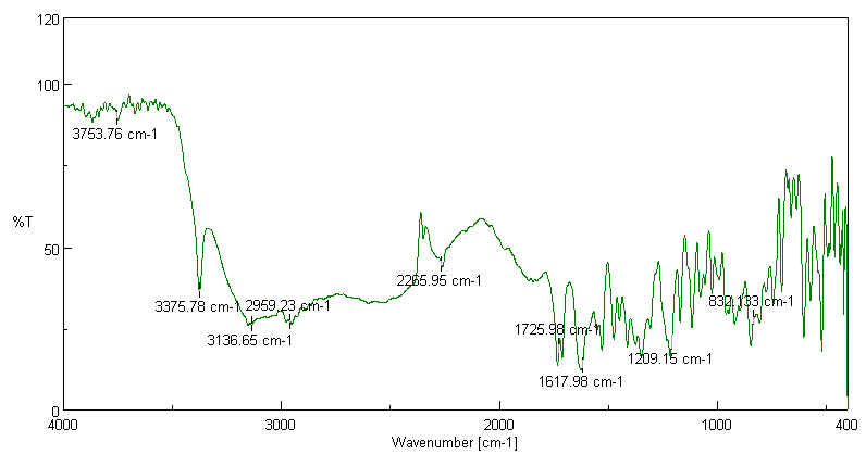 The in vitro dissolution test was carried out in a USP II paddle dissolution apparatus. The film of appropriate size (2 × 2 cm2) was cut and placed in dissolution media. The dissolution medium consisted of 300 ml freshly prepared phosphate Buffer (pH 6.8), maintained at 37±0.5 °C and stirred at 50 rpm. Samples of 5 ml were withdrawn at predetermined time intervals and replaced with fresh medium. The samples were subjected to UV analysis at 206 nm (λ max) [26].