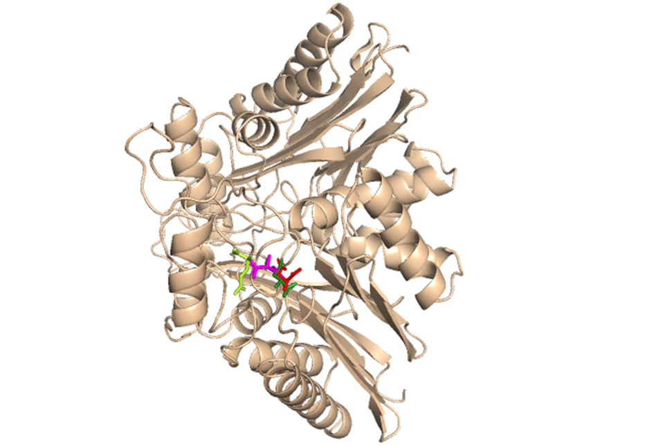 Fig. 6: Docking L-asparaginase with L-asparagine (Red), D-glutamine (Orange), L-glutamine (Yellow), D-asparagine (Green)