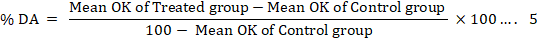 | Groups | Degree of orthokeratosis (%) | Drug activity (%) |