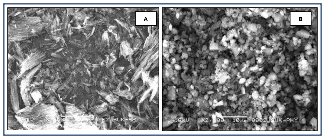 Fig. 10: Scanning electron microscopy of TA (A) and NLC optimized batch(B)