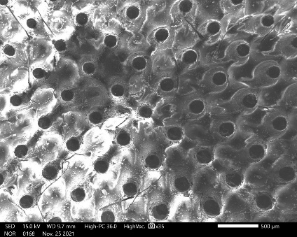 Fig. 10: Microscopic Image of pierced porcine skin using fabricated microneedles observed at 40X