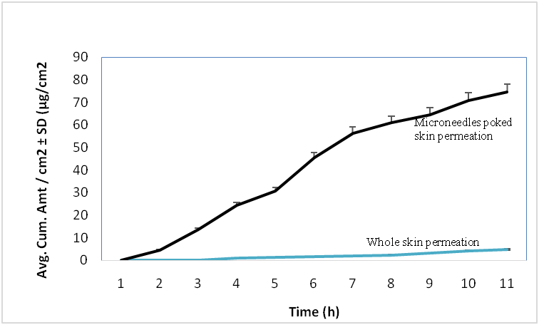 Fig. 8: In vitro permeation profile of Ɣ-Oryzanol through microneedle-treated porcine ear skin (n=3, mean±SD)