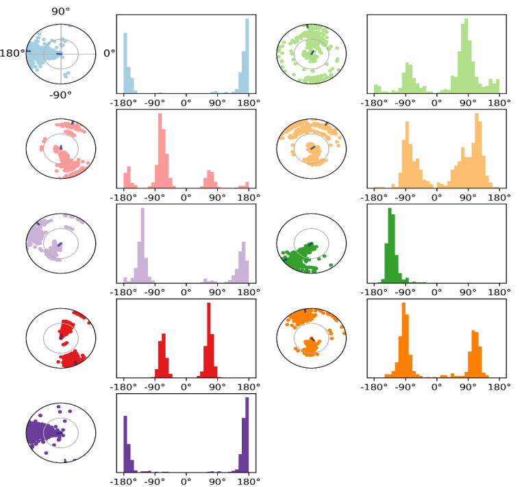 To comprehend the dynamics associated with it, the torsional degrees of freedom in the ligand provided by rotational bonds were examined. A dial plot and bar plot of the same colour accompany each rotatable bond torsion. In S21, a total of nine rotatable bonds have been identified as illustrated in fig. 6.
