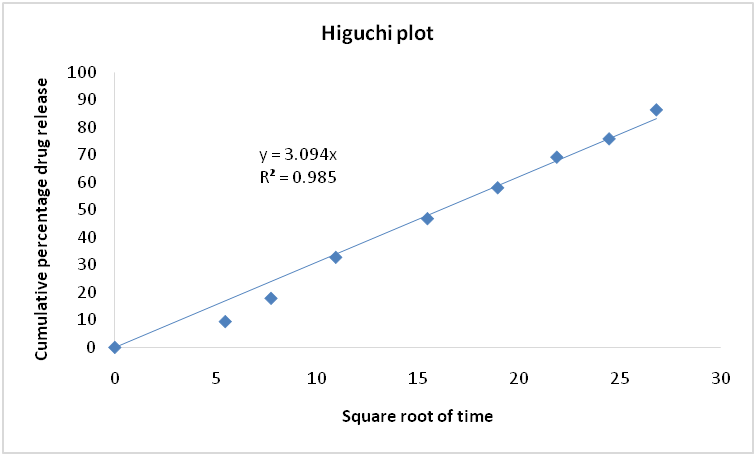 Fig. 16: Higuchi plot of optimised favipiravir-loaded PLGA nanoparticle formulation FNP021