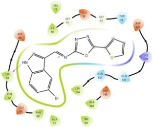 Table 1: Docking scores for different 5-(thiophen-2-yl)-1,3,4-oxadiazol-2-amine derivatives inside CDK-2 active site