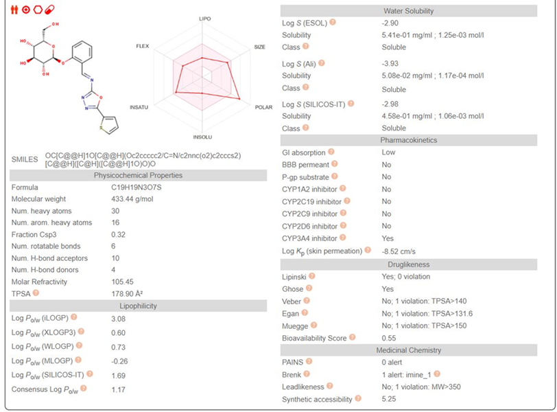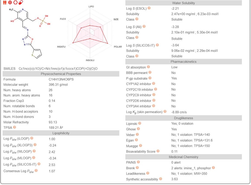 Fig. 6: Swiss-ADME web tool anticipated virtual properties of compound P-5