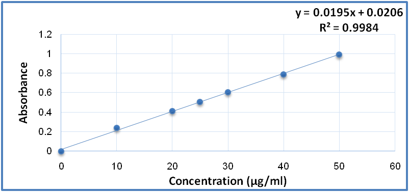 Calibration curves of MTX were constructed in phosphate buffer pH 7. In which 100 μg/ml stock solutions of MTX in each medium were prepared, then serial dilutions of 2-20 μg/ml in phosphate buffer (pH=7) as solvent were prepared. Samples were then analyzed spectrophotometrically using a UV-Visible spectrophotometer at the previously detected λ max of MTX in each medium, and calibration curves were constructed by plotting the measured absorbance values of each diluted solution against related concentrations [12].