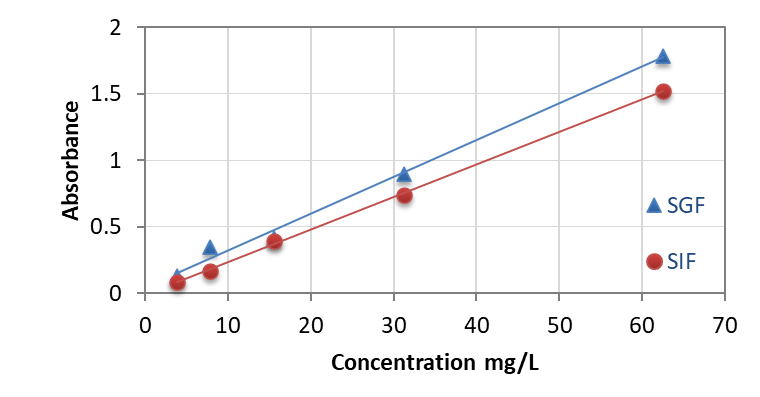 Fig. 1: Standard calibration curve of ciprofloxacin at SIF and SGI
