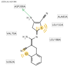| 2 | 3ZDI | UGJ | 3,6-Diamino-4-(2-chlorophenyl)thieno[2,3-b]pyridine-2,5-dicarbonitrile | 2.65 Å | - | [19] |