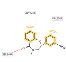 | 1 | 7AFW | R9Q | 3-[(2~{R})-4-methyl-5-oxidanylidene-2,3-dihydro-1,4-benzoxazepin-2-yl]benzenecarbonitrile | 1.81 Å | Kd: 9.15e+5 (nM) from 1 assay(s) | [18] |