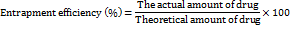 The accurately weighed sample of microspheres (50 mg) was dispersed in 20 ml of acid buffer (pH 1.2). The dispersion was sonicated for 30 min and kept overnight for the complete erosion of microspheres. The sample was centrifuged, filtered and analyzed using a UV-visible spectrometer (Model: UV 2401 PC, S.220V Shimadzu, Japan) at 260 nm. The following equation calculates the entrapment efficiency and drug content of microspheres [14]: