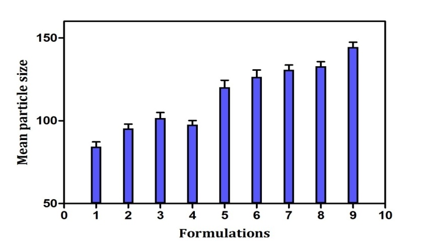 Fig. 2: Mean particle size of microsphere formulations, each value represents mean±SD, (n=3)
