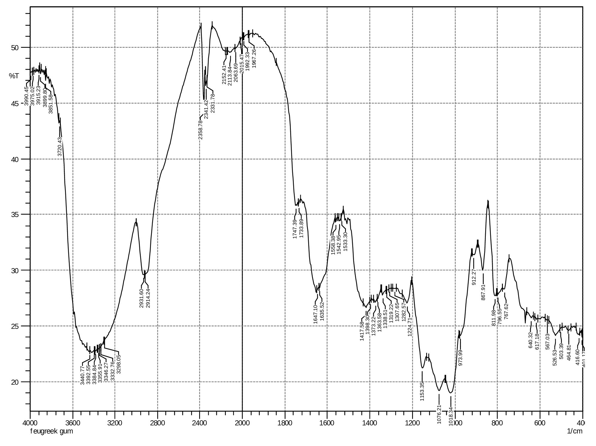 The high-quality fenugreek seeds were obtained from the local market, cleaned and dried. Dried fenugreek seeds were ground using a laboratory mixture. The ground fenugreek seeds (250 g) were soaked in distilled water (500 ml) overnight to allow the seeds to swell. The swelled seeds were heated at 50 °C for 1 hour. After heating, a viscous liquid solution was obtained. The obtained solution was filtered using a multilayer muslin cloth bag to remove the marc from the viscous solution. Acetone was added to the above filtrate to precipitate the mucilage, and the mucilage was separated. Freshly obtained mucilage was purified with ethanol, followed by acetone three times. At 50 °C, dried purified mucilage was dried in an oven. Then dried gum was ground using a grinder and passed through mesh # 100 to get a fine powder. The obtained fenugreek seed gum powder was preserved in amber-colored (light-protected) glass vials, purged with N2, and stored at room temperature until further analysis [12].