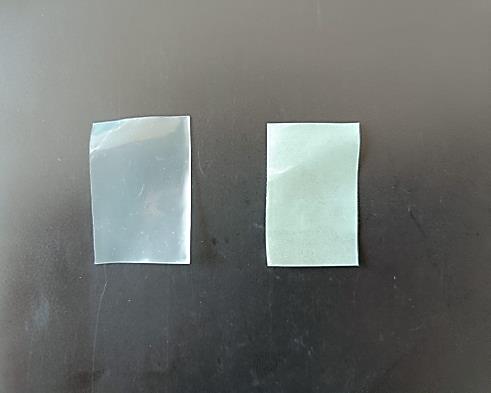 Fig. 1: Drug-loaded thin films (a) two layers of sublingual thin film loaded with zolmitriptan and piroxicam, respectively; (b) Whole batch of drug-loaded films