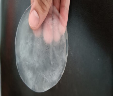 The sublingual bilayer films of ZOTP and PRCM were prepared by the same method as utilized to prepare placebo films, and finally, two separate drug-loaded layers were joined together to form a bilayer unit. Firstly, drugs were physically mixed separately with each bioenhancer, Sepitrap 80 and Sepitrap 4000 in the motar pestle, proven to enhance dissolution of various low-aqueous soluble drugs [22, 23]. This mixture of drug and bioenhancer was dissolved in a solvent system consisting of PEG-400 and ethanol, stirred for 1 hour to augment the solubility of drug. In a separate beaker film-forming polymer, HPMC E-15 and pullulan in a ratio of 1:1 were added in triple distilled water prewarmed at 40 ᵒC and stirred continuously until a clear solution was obtained. After that, mannitol was added along with sucralose, citric acid, and flavoring agent and further stirred for 1 hour. Finally, both solutions were mixed, which was then stirred again for 2 h to maintain the uniformity. The resulting solution was carefully sonicated for at least 30 min and kept aside for 1 hr to remove the air bubbles formed during stirring. Then the solution was lastly casted on the pre-lubricated glass petri dish of 9 cm in diameter and was allowed to dry in a hot air oven maintained at 45 οC for 6-8 h. After a whole night, dried films were observed for any defects and removed safely from the surface of petri dish [24]. The picture of the ready-to-join two layers of the films and the whole batch is demonstrated in fig. 1. The film, after separation from the petri-dish, was then cut to the desired size of 3×2 cm. The cut sample films were kept in a desiccator for further testing. The compositions of five different bioenhanced bilayer sublingual thin films (BSTFs) are shown in table 1.