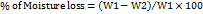 The moisture absorption capacity of the bilayer films was determined by placing the previously weighed (W1) films in a petri dish, which was then placed in a desiccator containing anhydrous calcium chloride. After the completion of 72 h, all films were weighed (W2) again [34]. The same procedure was carried out in triplicate and the percentage of moisture loss was calculated using the below-given formula.