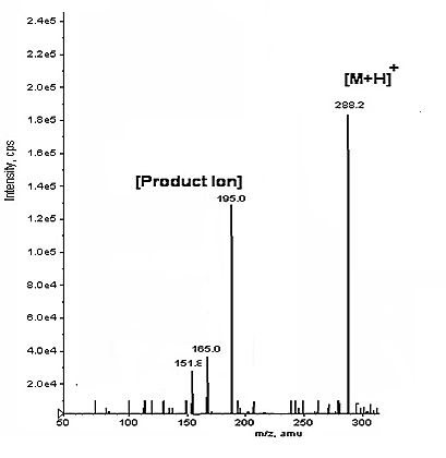 Fig. 2: Mass spertra reflecting parent and product ion of (a) Zolmitriptan and (b) Piroxicam respectively