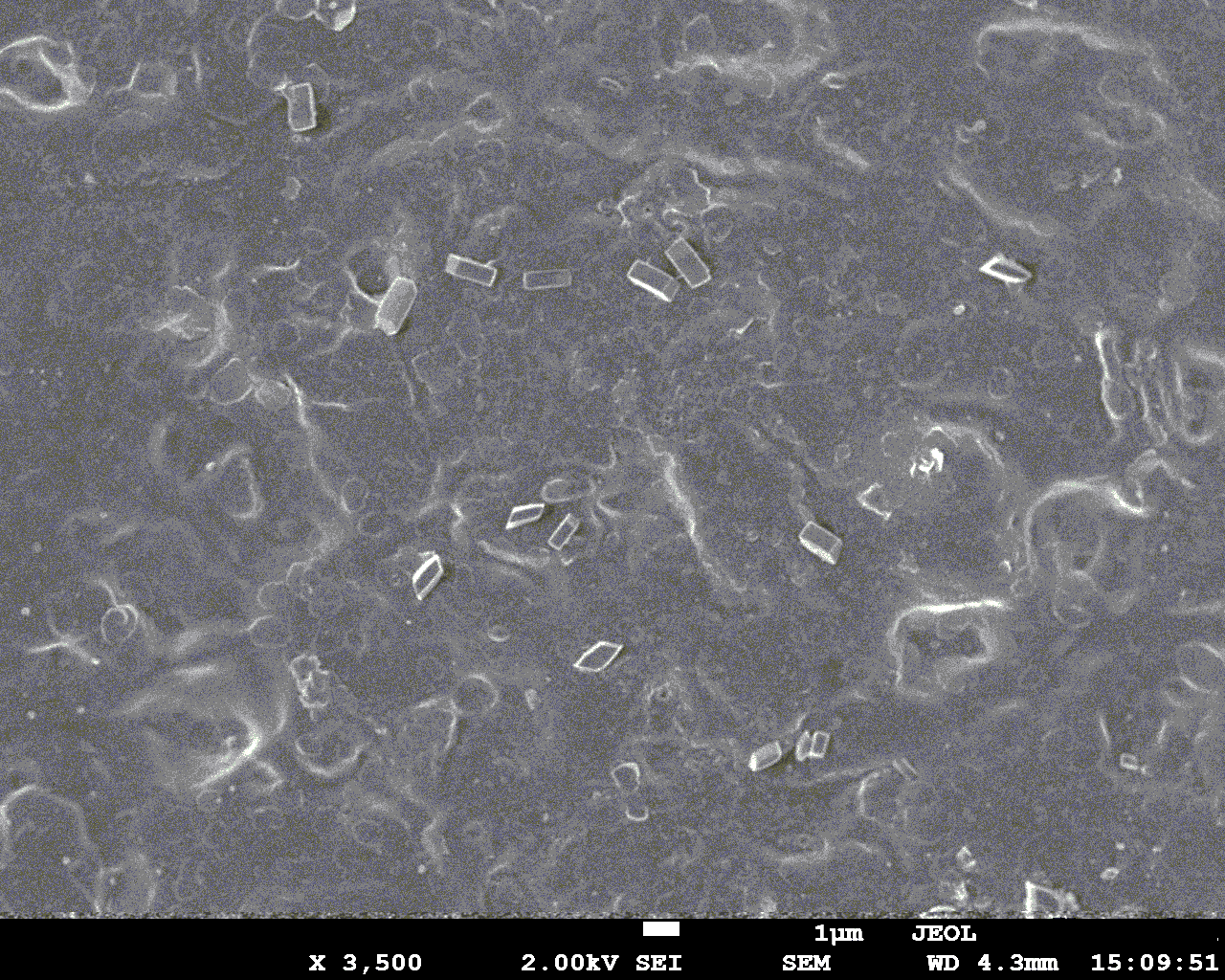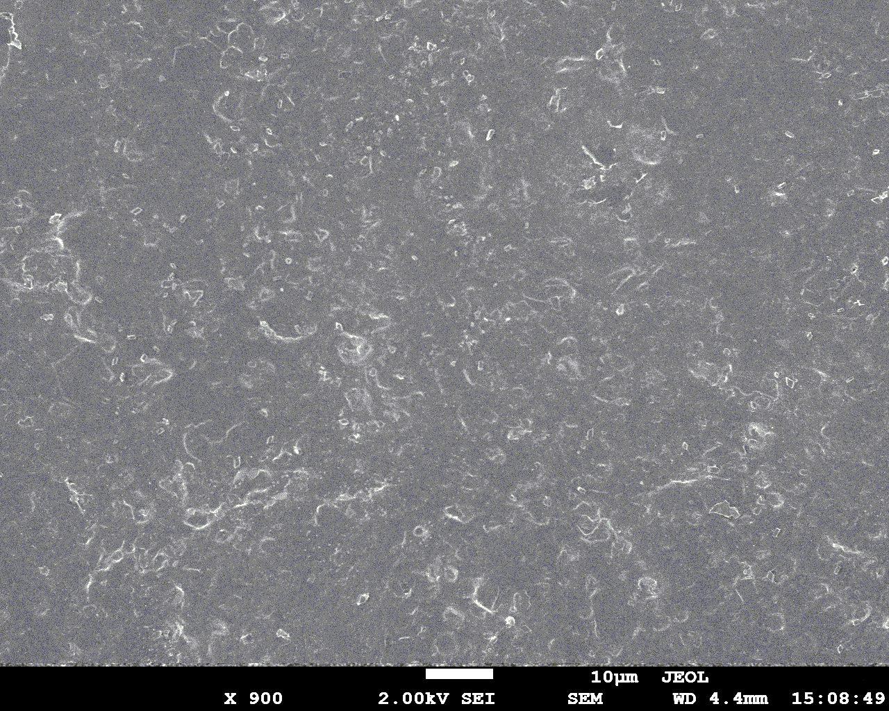 Fig. 3: SEM images of film surface demonstrating a) Uniform distribution of material at X 900 b) Material of the films at X 3500