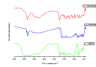 Fig. 8: FTIR of final formulation BSTF-3 compared with pure zolmitriptan and piroxicam