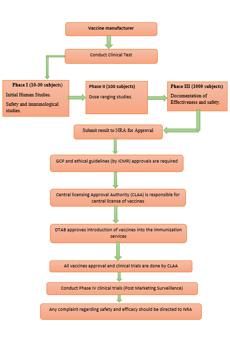 Various regulatory agencies for vaccine registration are the Ministry of Health and Family Welfare, National Technical Advisory Group on Immunization, Indian Council for Medical Research, Central Drugs Standard Control Organization [27-31]. Further information of vaccine regulations in India were depicted in [fig. 3].