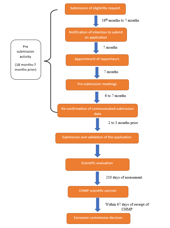 CHMP grants marketing authorization after assessing the whole filing for the product's safety, efficiency, quality, and risk-benefit ratio. The regulatory authorities must first give their permission before reviewing the dossier for conformity in areas like clinical, laboratory testing and manufacturing. Marketing Authorisation Application (MAA) of EU were illustrated in [fig. 6].