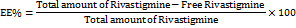 The entrapment efficiency (EE %) could be achieved by the following equation.