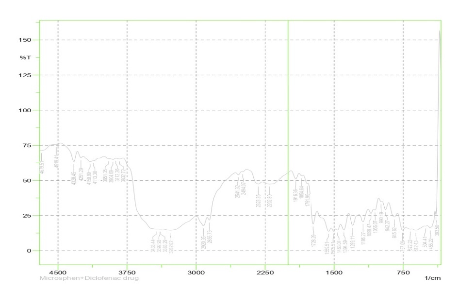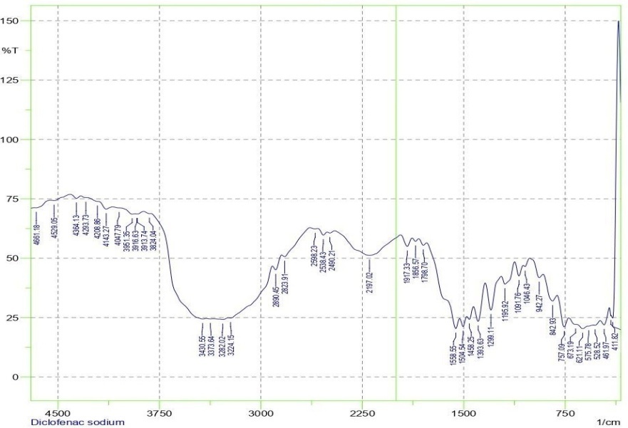 FT-IR spectroscopy was used for interactivity between drug and excipients (FTIR-8400S from shimadzu spectrophotometer). The specimens were prepared by KBr disk technique, in this analysis of specimens which were dispersed in KBr power and disk [19].