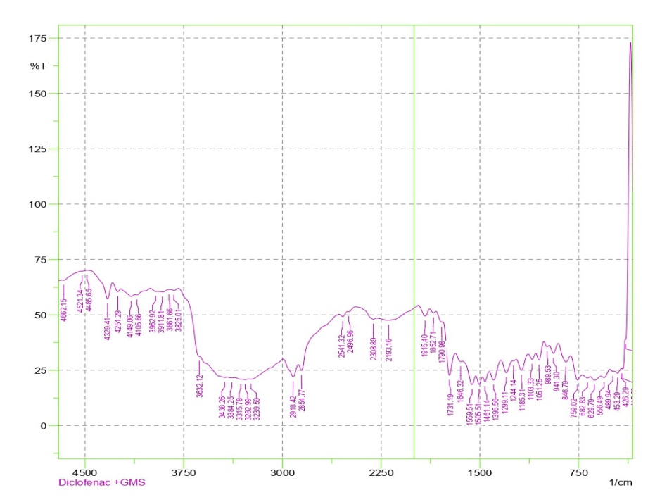 Fig. 5: (B) FTIR spectra of glyceryl monostearate. All values shown in graph are measured as mean±SD, n=3