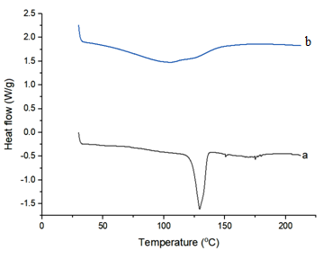 Fig. 4: DSC thermogram of a) tacrolimus monohydrate b) optimized film