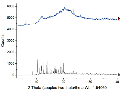 Fig. 5: XRD pattern of a) tacrolimus monohydrate b) optimized film