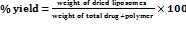 The formula used to determine the percentage yield of all manufactured Paclitaxel liposome formulations is given below: